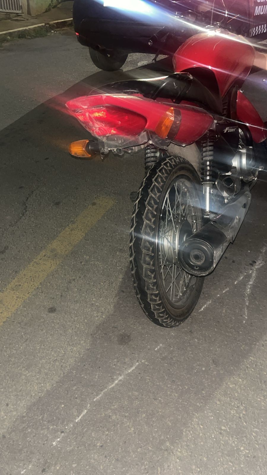 Considerando a possibilidade de o veículo ser produto de furto ou roubo, foi iniciado acompanhamento pelas vias do bairro. Em determinado momento, ao perceber a aproximação da viatura, o motociclista tentou forçadamente impedir a manobra de emparelhamento, posicionando-se à frente do veículo oficial. Na tentativa, colidiu com a viatura, perdeu o controle da motocicleta e caiu ao solo.