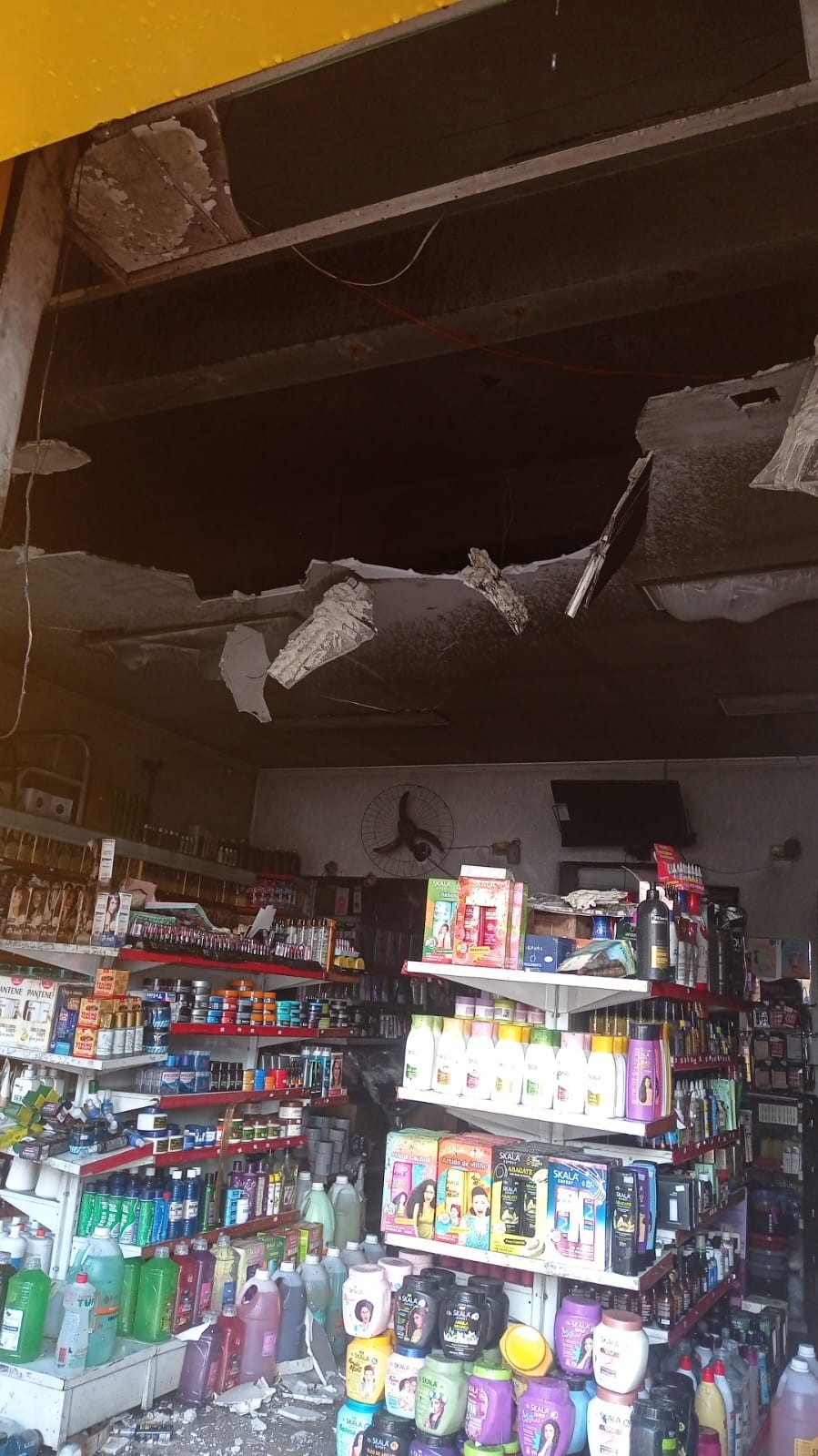 No local, foi identificado fogo em uma pequena área com produtos próximos às entradas da loja. A equipe combateu as chamas e fez o rescaldo. A ação rápida evitou que o incêndio se espalhasse.