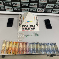 NOVA SERRANA/MG – HOMEM SUSPEITO É PRESO PELA POLÍCIA MILITAR POR TRÁFICO DE DROGAS; ENTORPECENTES, CELULARES E DINHEIRO SÃO APREENDIDOS