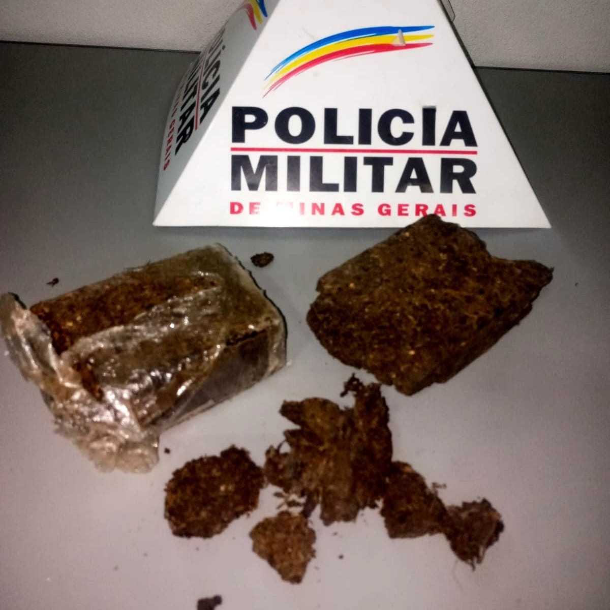 Após consulta nos sistemas de informação, foi confirmado que a caminhonete havia sido roubada em Nova Serrana no mês de junho e se encontrava com placas adulteradas. Nas proximidades do automóvel, dentro de um tambor, foram localizadas duas barras de substância com aparência esverdeada, semelhante à maconha, além de porções fracionadas da mesma substância.
