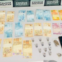 Diante das evidências, a equipe realizou a abordagem e, durante buscas no local, foram encontrados diversos materiais comumente associados à prática do tráfico de entorpecentes, incluindo substâncias análogas a droga embaladas para comercialização e uma quantia em dinheiro.
