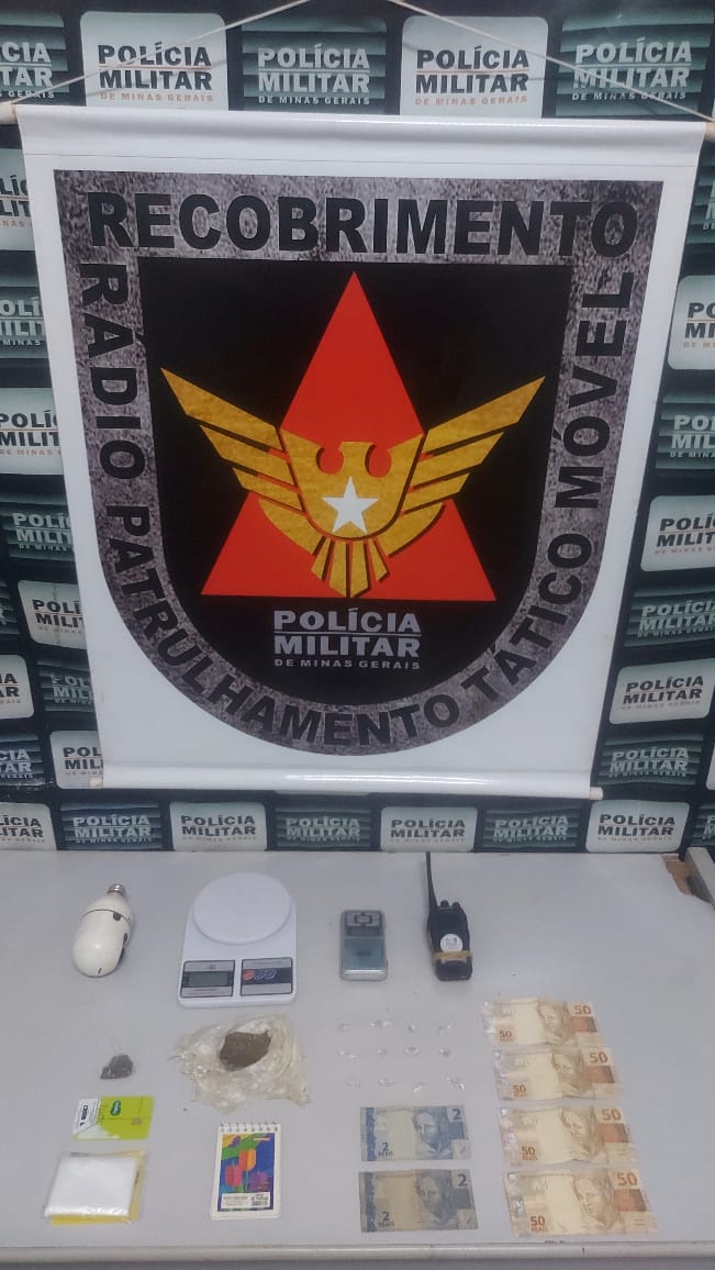 Na noite de ontem (13/05), durante uma averiguação em um sítio localizado no povoado de Floresta, a Polícia Militar apreendeu 12 pedras de substância análoga ao crack, um tablete e uma bucha de substância análoga à maconha, além de materiais utilizados para embalar drogas, um caderno com anotações do tráfico, um rádio comunicador, uma câmera de segurança e a quantia de R\$204,00 em dinheiro. Dois homens, de 19 e 18 anos, foram identificados. Três motocicletas também foram apreendidas.