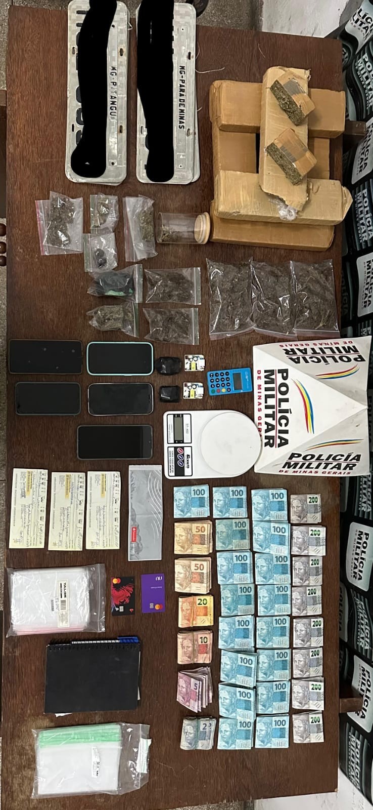No interior do apartamento, foram apreendidos os seguintes itens: 11 tabletes de maconha, 3 embalagens contendo inflorescências de cannabis, 1 embalagem de haxixe, a quantia de R$ 28.000,00 em dinheiro proveniente do tráfico, 3 cheques no valor total de R$ 6.000,00, 6 aparelhos celulares, 4 carregadores de celular desmontados, 1 máquina de cartão de crédito, 1 balança de precisão e o veículo Fiat Argo.