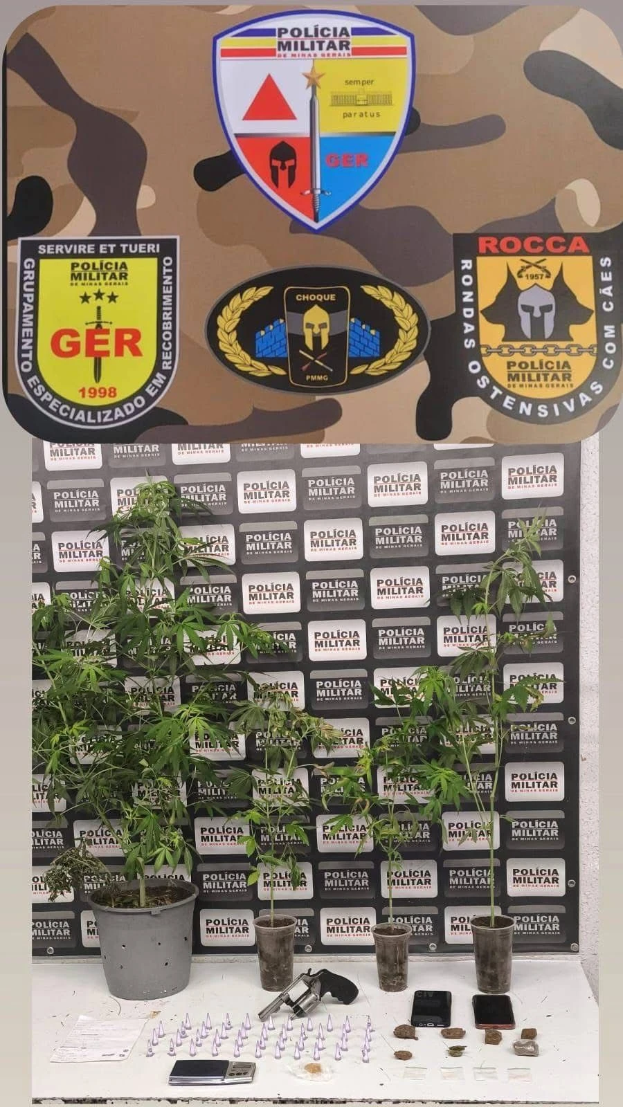 Também foram apreendidos um revólver calibre .38, sete buchas de maconha, 43 pinos e quatro papelotes de cocaína, uma pedra de crack, uma balança de precisão, dois celulares, anotações do tráfico e um veículo usado pelos suspeitos.
