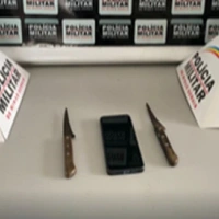 Durante patrulha, os militares receberam denúncia sobre dois indivíduos rondando lojas. Eles foram abordados e encontrados com duas facas artesanais e um celular Xiaomi.