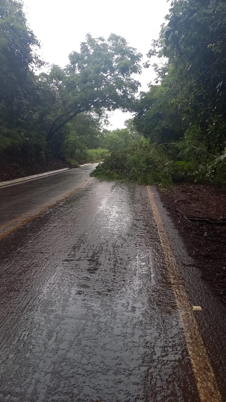 Queda de árvore interdita parcialmente a BR-352 em Onça do Pitangui