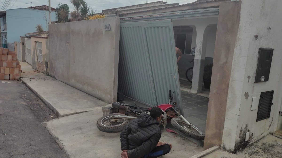Diante da evidente ameaça à segurança do tráfego local, a guarnição iniciou o acompanhamento do referido veículo, que prosseguiu em direção ao bairro São Francisco, trafegando pela contramão na rotatória da mesma avenida. Na sequência, os indivíduos acessaram vias do bairro Santo Antônio, onde perderam o controle da direção e colidiram contra o portão de uma residência.