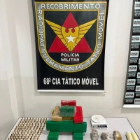 No local, também foram apreendidos uma balança eletrônica e dois rolos de plástico filme, comumente utilizados para embalar drogas.