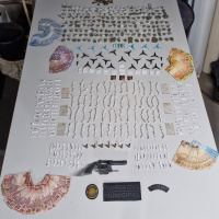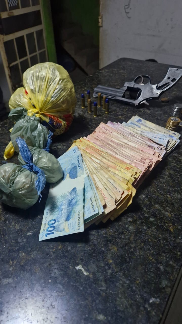 Ao perceber a aproximação da equipe, um homem de 22 anos tentou se desfazer de uma sacola, arremessando-a em direção a imóveis vizinhos. No interior da sacola foram localizadas 205 porções de maconha e um revólver calibre .38, carregado com munições.