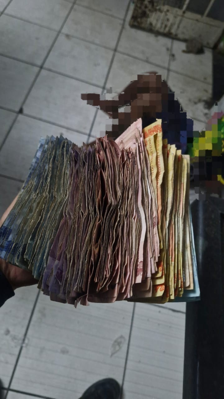 Durante a abordagem, o suspeito ainda portava outra sacola de maior volume, da qual não conseguiu se desfazer, contendo 183 pedras de crack, 163 porções de uma substância conhecida como “ice”, 94 unidades de cocaína acondicionadas em pinos, 06 porções de MDMA (popularmente conhecido como ecstasy), uma munição de calibre .38 SPL, além da quantia de R$ 2.570,80 em dinheiro, composta por cédulas de valores diversos.