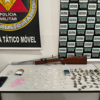 Durante a ação, os policiais perceberam um forte odor característico de substância semelhante à maconha e, mediante consentimento, efetuaram buscas no interior da residência. No local, foram encontrados entorpecentes devidamente embalados e prontos para comercialização, utensílios utilizados para embalagem, um telefone celular e uma arma de fogo de fabricação caseira. Ao todo, foram apreendidas 51 porções de substância análoga à maconha, 47 invólucros de substância semelhante à cocaína e a referida arma artesanal.