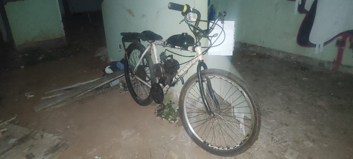 De imediato, a equipe policial deslocou-se até a Rua João Teixeira, no Bairro Residencial Capanema, onde localizaram a bicicleta motorizada mencionada, a qual estava estacionada dentro do imóvel abandonado.