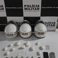 No total, foram apreendidos: 12 tabletes de maconha, 11 porções de cocaína, três papelotes da mesma substância, uma balança de precisão e um celular.