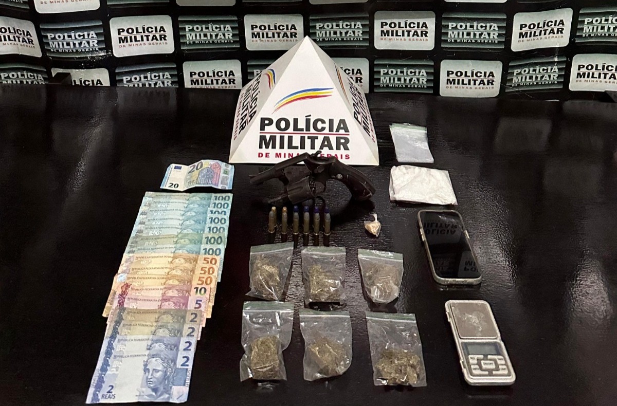 No decorrer das buscas, foram localizados e apreendidos: 6 porções de substancia análoga à maconha, 1 pedra de substancia análoga ao crack, 1 balança de precisão, a quantia de R$ 873,00 em dinheiro, 1 telefone celular, 1 motoneta, além de 1 revólver calibre .38 municiado e outras 12 munições do mesmo calibre.