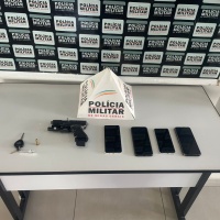 Durante a abordagem, os policiais encontraram com os adolescentes uma arma de fogo de fabricação caseira, uma munição calibre .38 e quatro telefones celulares, um dos quais pertencia à vítima do roubo. A chave do veículo também foi apreendida com o grupo.