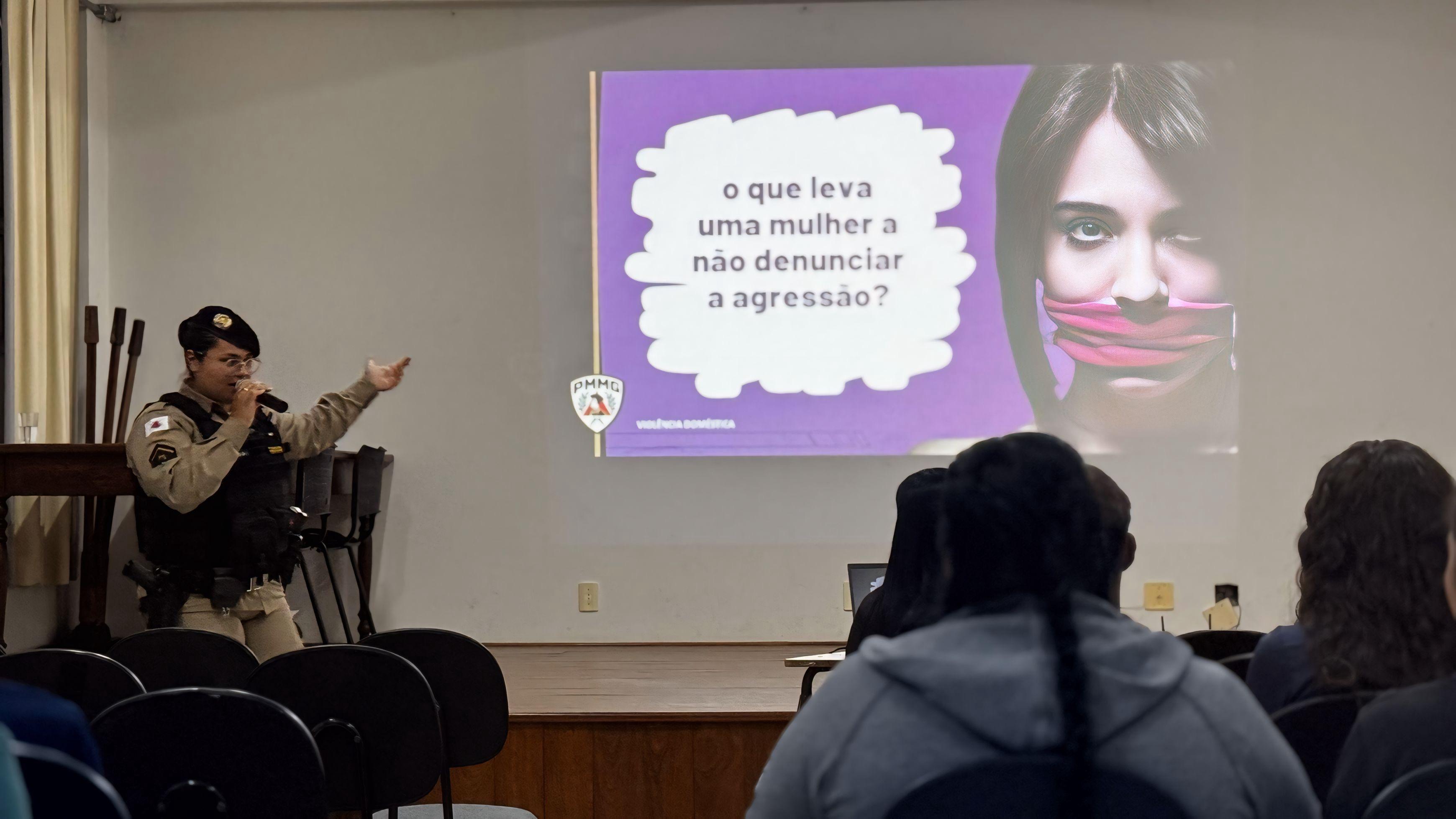 Na noite da última segunda-feira (18/08), a Soldado Leles, da 19ª Cia PM Ind, ministrou uma palestra em Onça de Pitangui dentro da programação do Agosto Lilás, campanha nacional de enfrentamento à violência doméstica e familiar contra a mulher.
