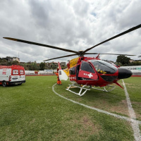 Na tarde do dia 23 de setembro, o helicóptero Arcanjo 14, do Suporte Aéreo Avançado de Vida (SAAV/MG), realizou o pouso no Campo Arena Sicoob Divicred, em Divinópolis, para a transferência de uma paciente de 70 anos, vítima de queimaduras causadas por explosão de um galão de combustível.