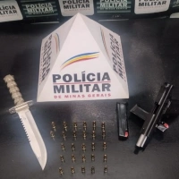 Na abordagem, o homem de 44 anos foi encontrado com uma pistola calibre .380, 16 cartuchos, outro carregador com 16 cartuchos e uma faca tática de cerca de 20 cm. No segundo indivíduo, nada irregular foi localizado.