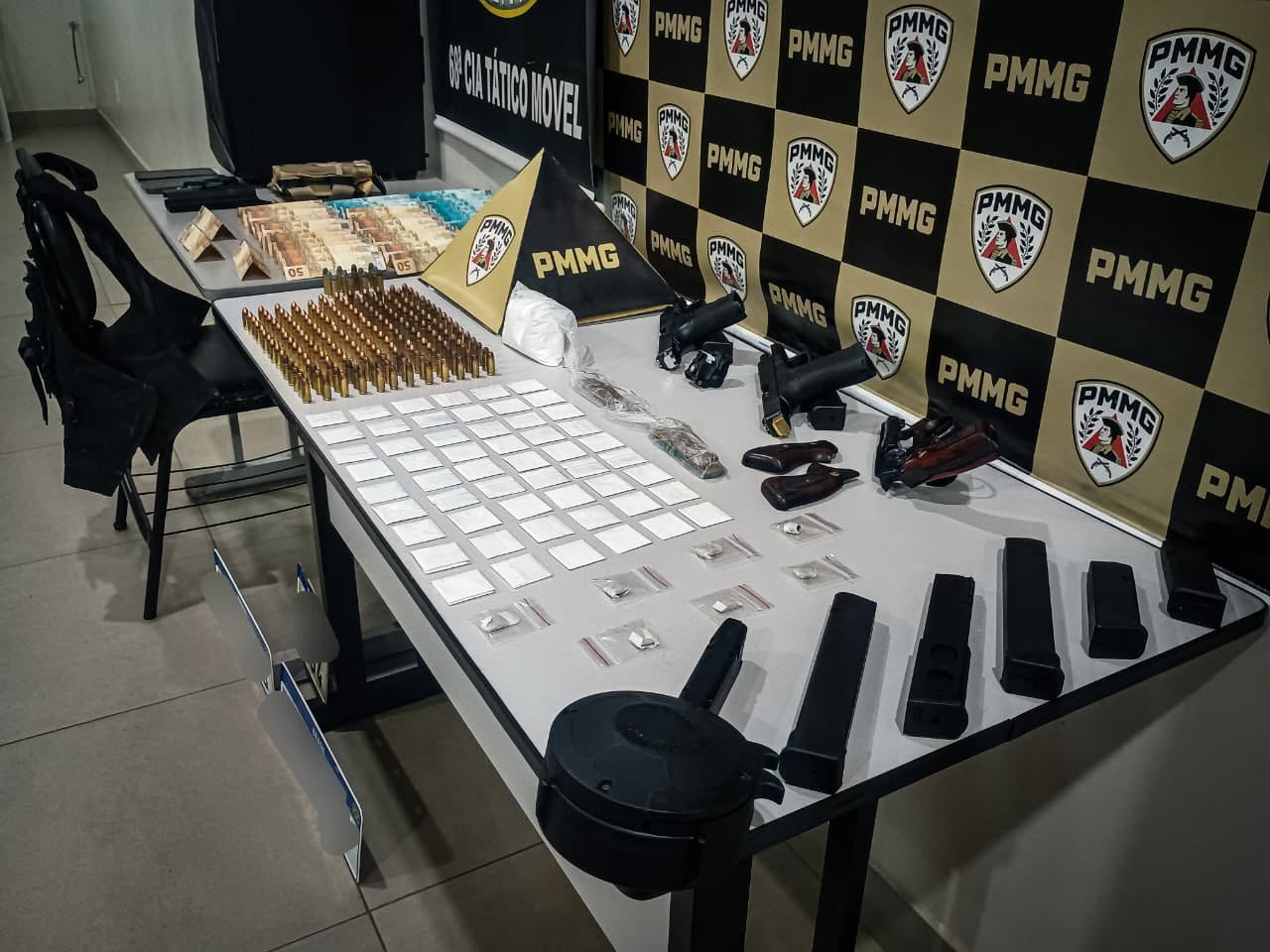 Muitas drogas e armas: Polícia Militar desarticula ponto de tráfico, apreende armas e drogas em Nova Serrana