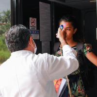 Profissionais da Vigilância de Saúde vão realizar uma triagem com as pessoas presentes na rodoviária e que estiverem chegando ao município. Nessa triagem será verificada a temperatura e um check lista será realizado para a verificação de suspeita de síndrome gripal.